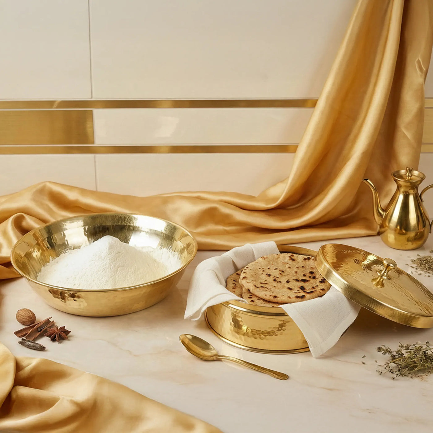 Handcrafted Kalasians chapati box and paraat, designed to keep rotis warm while offering durability, elegance, and a timeless blend of tradition and functionality.